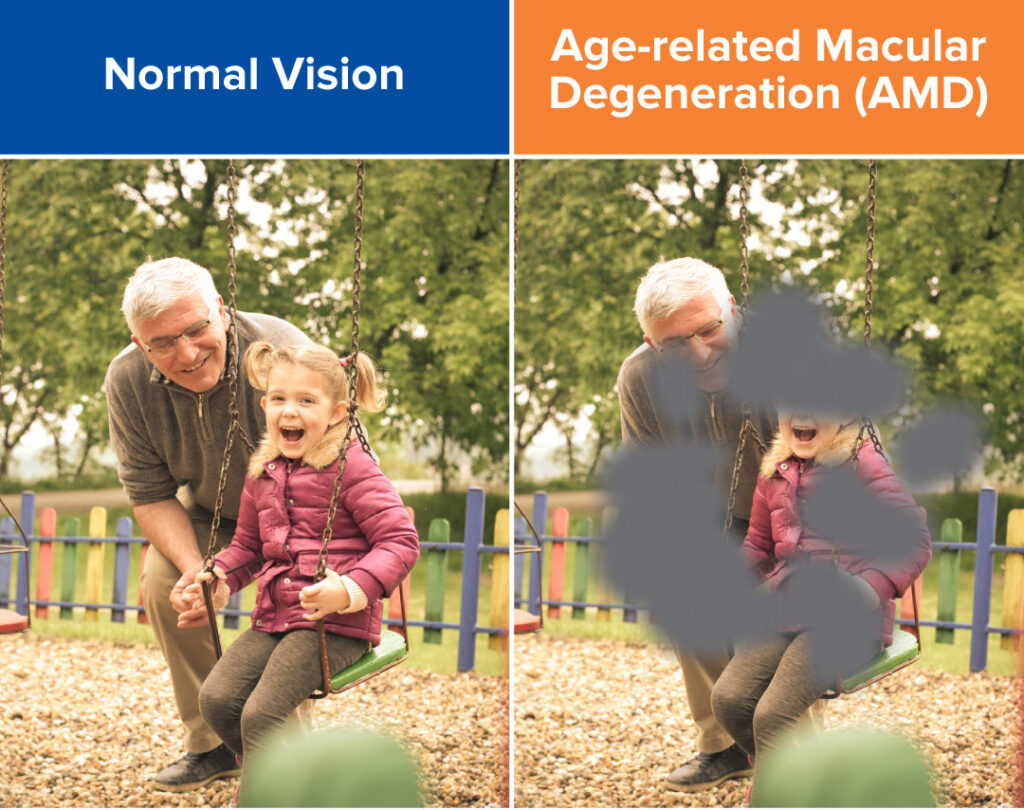 Age-related macular degeneration is the most common cause of legal blindness in individuals 65 years or older*. This condition affects the macula, the sensitive middle portion of the retina that is responsible for fine vision (reading, driving, recognizing faces) and color perception.